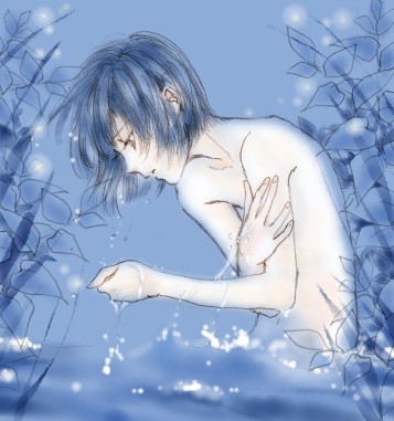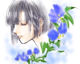 | この一枚が、長い長い物語の始まり・・・ めるじさんが掲示板に投稿してくださった 露草の写真を見て、これを描いてくださいました。 皆さんとやり取りする楽しさの中から生まれた作品。 サイト運営の醍醐味ですね。 |