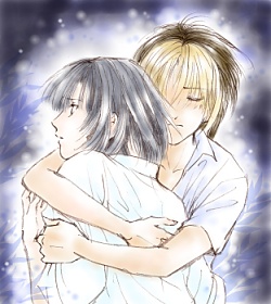 「クレセント・ムーン」に寄せて描いてくださいました。 体の関係から入ってこじれてしまう二人の 哀しいすれ違い―― 好きであればあるほど、心を偽らなくてはならない辛さが 二人の表情に表われていて とても好きな一枚です。 |